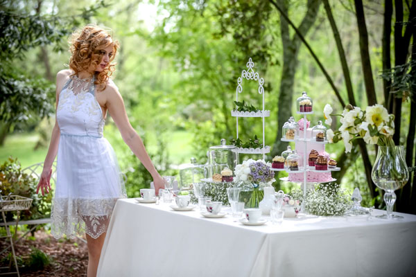 Ciao Elena, io avrei voluto organizzare un matrimonio stile Alice in Wonderland… purtroppo dato il numero di invitati non riusciamo a preparare un tè delle cinque, ma il tema Alice e giochi ci sarà. Infatti festeggeremo con un picnic pomeridiano in un giardino, il mio abito è corto di tulle bianco e azzurro, ci saranno giochi, tè (freddo!) e una torta azzurra.