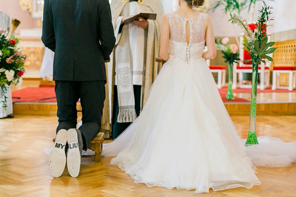 Sulle scarpe lo sposo aveva scritto Myliu, che significa ‘Ti amo’.