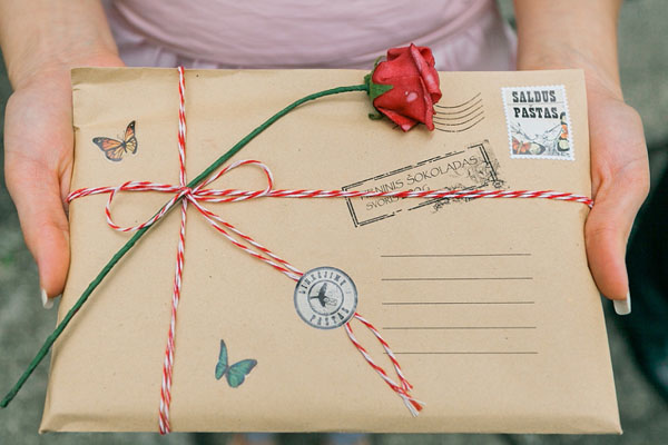 Dopo la cerimonia la coppia ha donato a ogni ospite una tavoletta di cioccolato, decorata meravigliosamente con un pacchetto postale, come ringraziamento.
