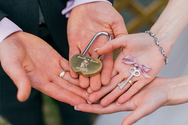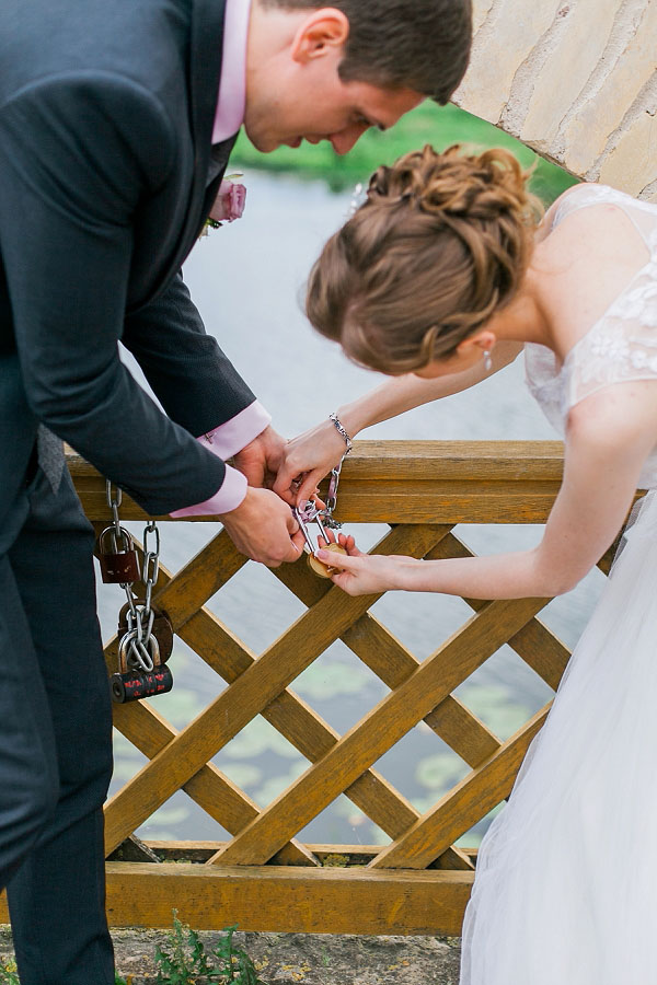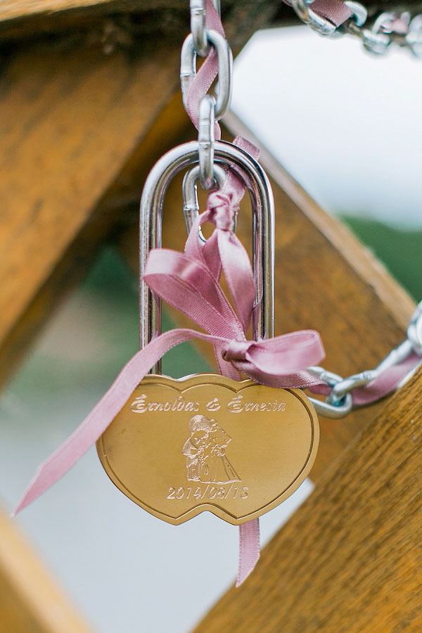 Siamo poi andati nel parco per alcune foto e la cerimonia del lucchetto, un lucchetto a forma di cuore con incisi i nomi degli sposi e la data del matrimonio. Una volta che la coppia ha chiuso il lucchetto, questo non si può più aprire, così come il loro amore e il loro impegno l’uno verso l’altra. Il rito simbolizza l’apertura reciproca dei cuori degli sposi. Hanno lanciato la chiave oltre il ponte nell’acqua, dove non c’è possibilità di recuperarla.
