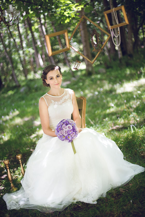 Avete già scelto il vostro look da sposa? Se sognate uno stile vintage, questo styled shoot pensato da Danielle Design e fotografato da Creatis vi ispirerà! Una sposa dall’eleganza senza tempo, in un raffinatissimo abito bon ton, pochi e studiati accessori e un tocco di colore nel bouquet di rose e lisianthus. Interessante l’allestimento: cornici sospese, una poltrona vintage e un elegante chandelier.