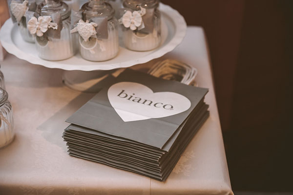 Ci siamo ispirate a uno stile classico e ricercato, che fosse però al tempo stesso leggero e romantico. Per la palette colori abbiamo scelto i toni neutri del grigio, con una predominanza assoluta del bianco. Abbiamo usato fiori, lanterne e candele in abbondanza. L’orchidea bianca, il fiore preferito della sposa, è stato il fil rouge di questo matrimonio… l’abbiamo utilizzato ovunque: nella stationery, negli allestimenti floreali e anche nei wedding favors.