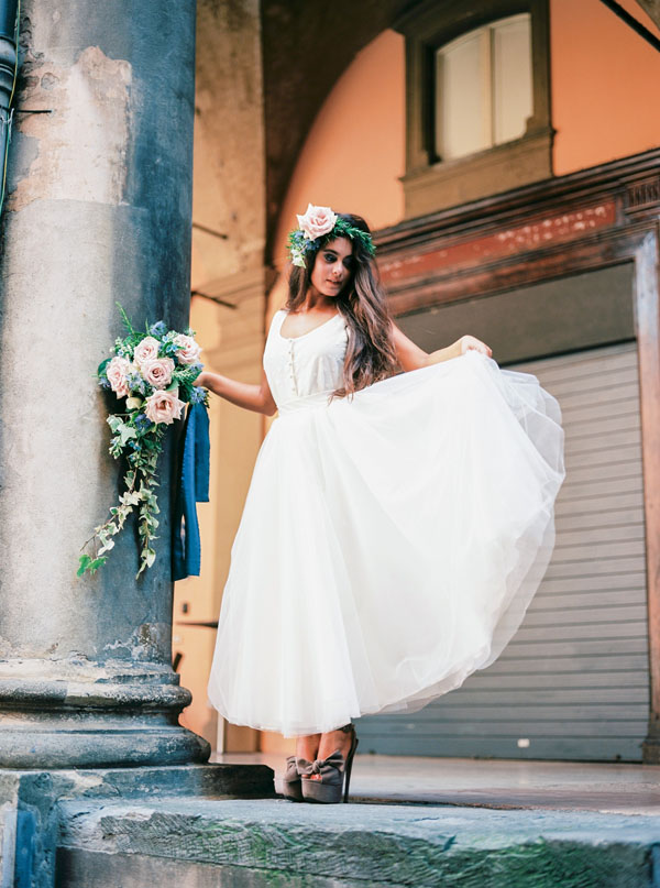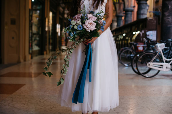 Queste foto scattate da Lato Photography sono perfette per sognare un po’. Lo shooting che vi mostro oggi racconta una favola urbana, la storia di una sposa alla ricerca del suo sposo per le vie di Bologna. Adorerete le decorazioni bohémien, i fiori (e la coroncina floreale!) nei toni dell’azzurro, del blu e del rosa, oltre alla suite grafica dai dettagli acquerello e all’abito da sposa realizzato da Nadia Manzato!