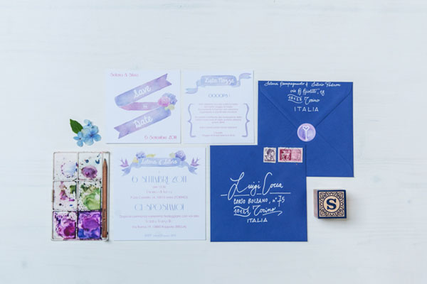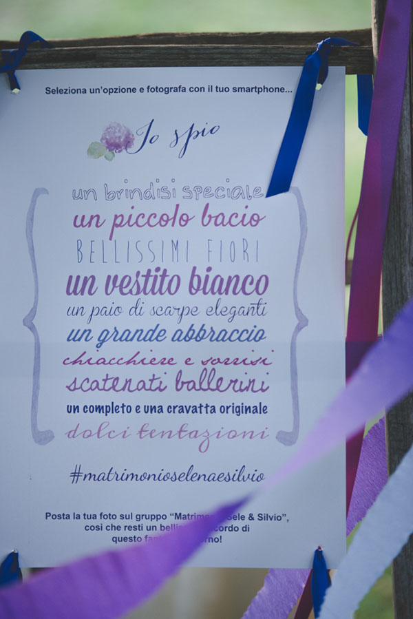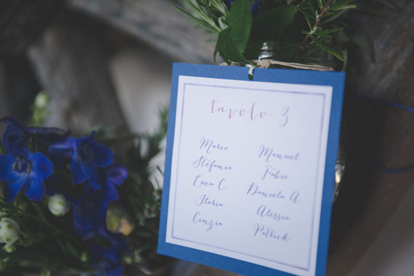Il matrimonio di Silvio e Selena è pieno di bellezza, fotografata meravigliosamente da Margherita Calati. Per prima cosa amo la palette: splendide sfumature di azzurro, blu e viola, riprese in tutti i dettagli, dalle partecipazioni realizzate da Studio Alispi agli allestimenti dal gusto country, passando per i fiori, rose e ortensie. Sono tante le idee da copiare, dal tableau de mariage rustico, al mappamondo che diventa guestbook, al gioco “Io spio”, perfetto per intrattenere gli ospiti e raccogliere le foto da loro scattate durante il ricevimento!
