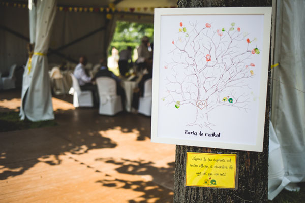 Ho disegnato personalmente l’albero come guest book dove i nostri ospiti potevano lasciare la loro impronta ed ora è appeso come ricordo nella nostra casa.