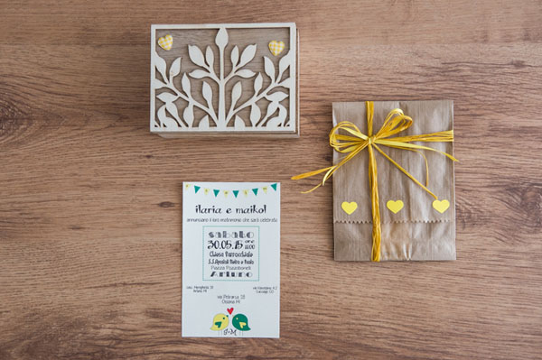 Tutta la parte grafica è opera di mia sorella Elisabetta che ha progettato le partecipazioni e i libretti per la chiesa. Il nostro simbolo che è stato riportato un po’ ovunque erano due uccellini disegnati da lei.
