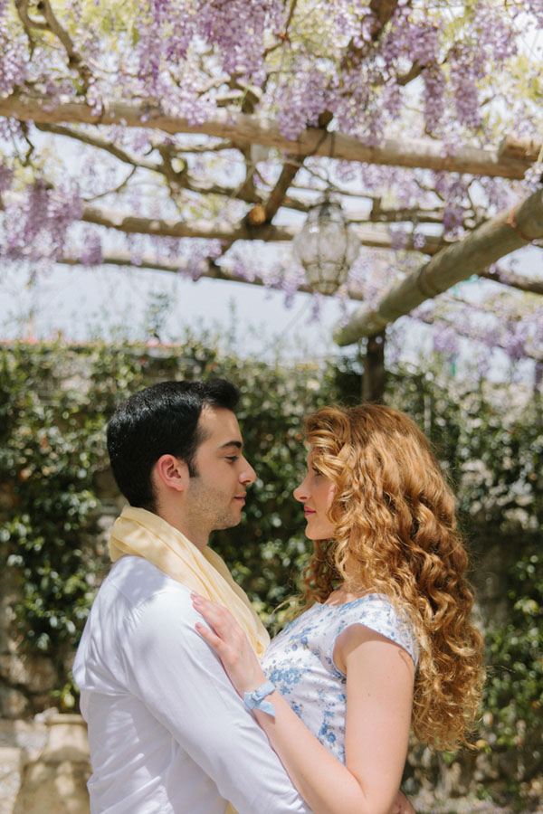 Chiudiamo la settimana con un meraviglioso inspiration shoot: non una vera engagement session, quindi, ma una vera coppia di innamorati. Il team guidato da Chiara Natale e Camilla Castaldo ha immaginato per loro una romanticissima storia, immersa in un’atmosfera anni ’50 e mediterranea: una splendida coppia, un viaggio a Ravello e una proposta di matrimonio in grande stile.