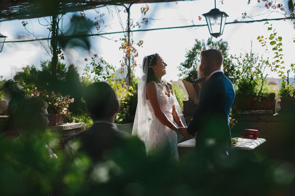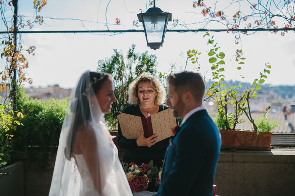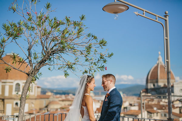 Una cerimonia intima sulla Terrazza Brunelleschi, con una spettacolare vista di Firenze; gli invitati, le rispettive famiglie e gli amici più cari, che li avrebbero seguiti in capo al mondo. Una settimana di vacanza per tutti, cene a base di pizza e prosecco, la dolce vita Toscana, il sole e la pace dei nostri paesaggi italiani.