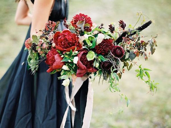 Trovo perfette anche i rossi, in particolari quelli più cupi, soprattutto se in un bouquet abbondante e oversize come questo.