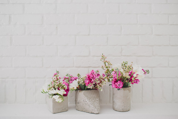 6. Amate lo stile industriale? Con il cemento a presa rapida e degli stampi in cartone potrete realizzare tutti i vasi che vorrete. Li trovo splendidi pieni di fiori dai colori vivaci!