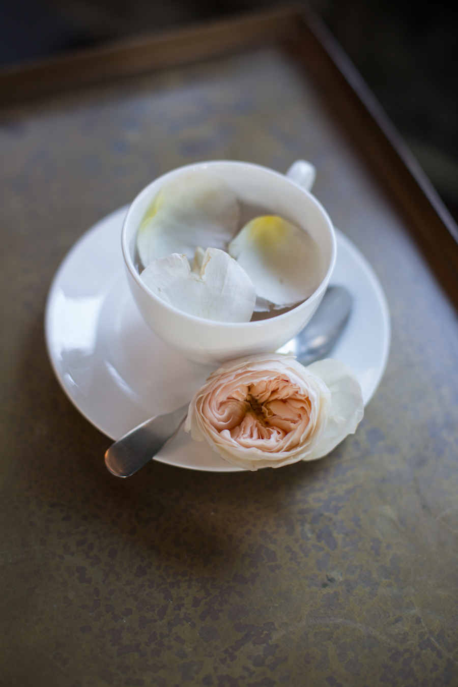 Il viaggio della nostra sposa continua nella bellissima serra dell’Hotel Borgo Nuovo, qui lo stile scelto è romantico e bohémien, l’abito della nuova collezione di Nadia Manzato dona un tocco retrò che si sposa alla perfezione con le delicate rose inglesi dell’ampio bouquet. Una tazza di tè, fiori e biscotti rendono l’atmosfera molto intima e i biscotti curati in ogni dettaglio da Grammo Milano, sono un’idea originale da donare agli inviatati come bomboniera o come ringraziamento.