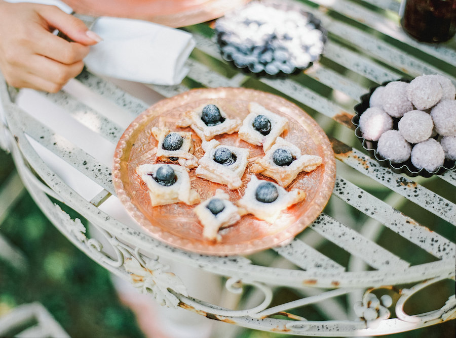 Tutto il cibo della colazione è stato fatto a mano da un’azienda italiana chiamata Pratinfiore, così come gli abiti della nostra meravigliosa sposa, realizzati da una designer francese Louise Valentine.