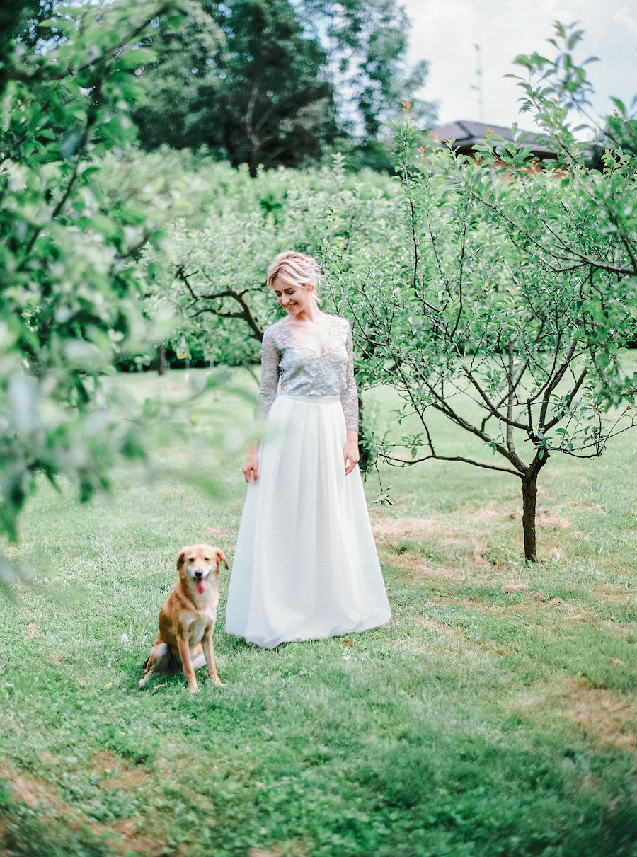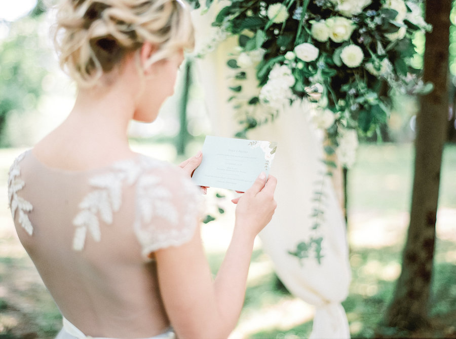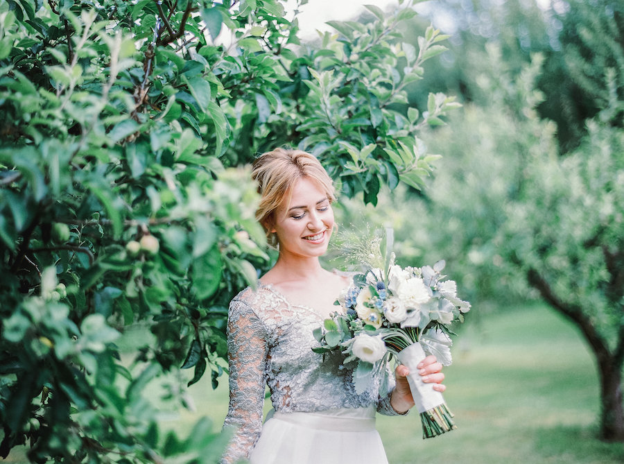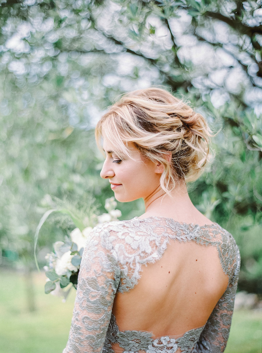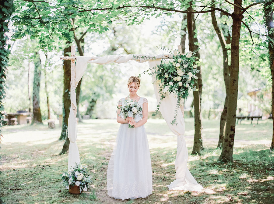Da Lucia Fatima… Quello che ci premeva era raccontare la storia completa di un giorno di matrimonio, visto con gli occhi della sposa. Quindi abbiamo iniziato con una bella colazione sotto gli alberi, per proseguire con la cerimonia, coronata da un arco di fiori, per terminare con un cambio d’abito per la cena. Non potevamo mancare infine alcuni scatti della sposa nel parco sottostante la tenuta.