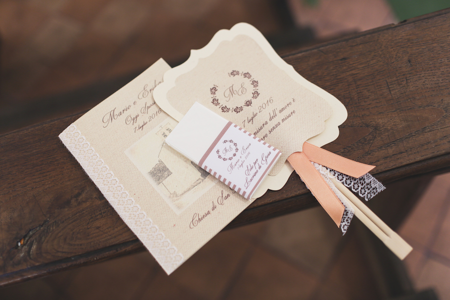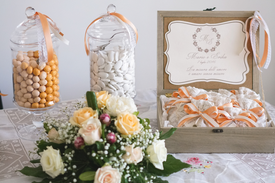 Da Sabina di Dolci Tesori Eventi… Con Erika è stata intesa a prima vista: è entrata nel mio negozio per caso per farsi progettare la sola partecipazione, ma poi l’intesa era tanta che gli ho seguito l’intero matrimonio.